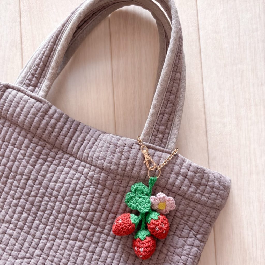 【かぎ針編み】葉っぱの編み方と、いちごチャームの仕立て方