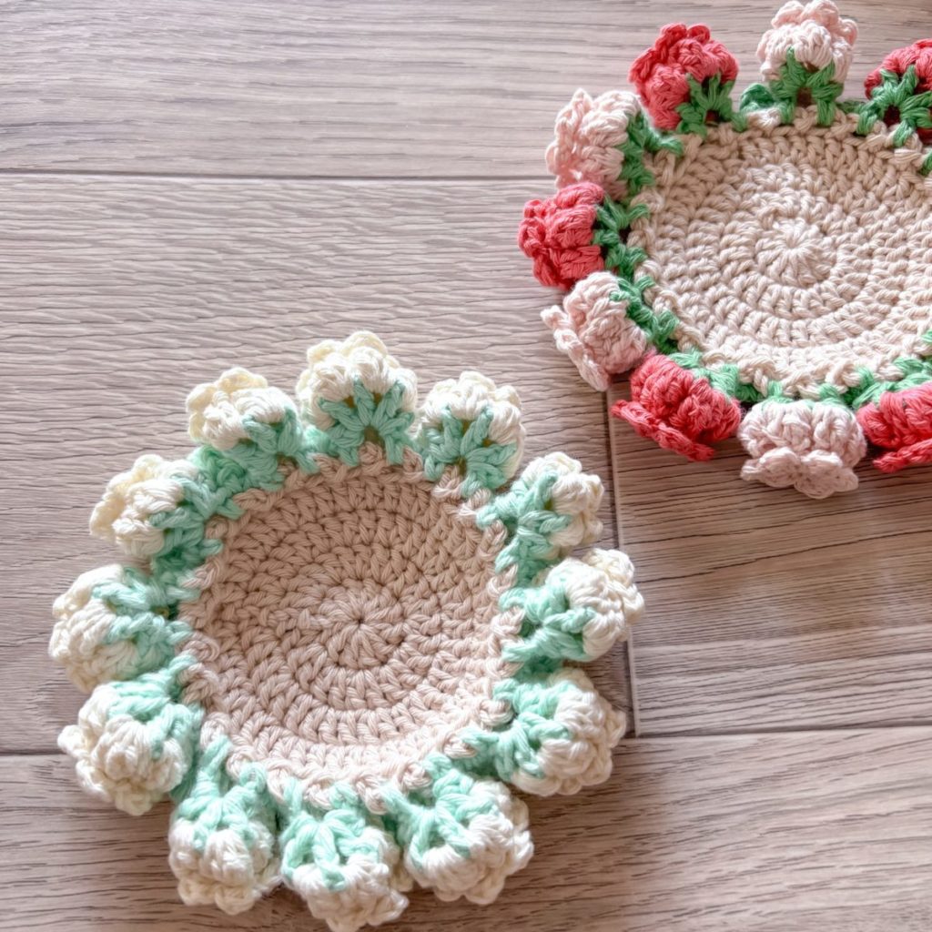 お好きな糸や色で、ぜひオリジナルのすずらんコースターを編んでみてくださいね。