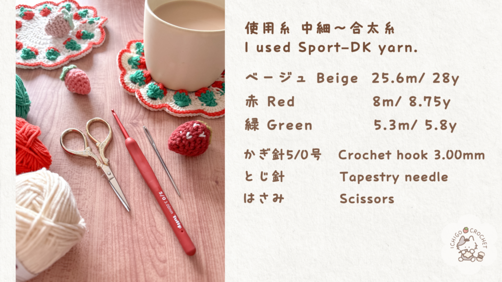 (その際「#いちごクロッシェ」や「@cororon323」をタグ付けしてくださると励みになります!)